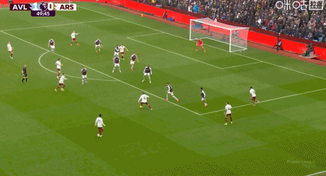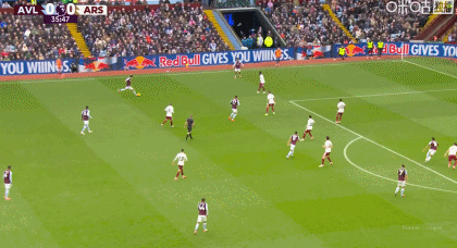第36分鐘,卡什抽射打穿拉亞小門,阿森納0-1維拉